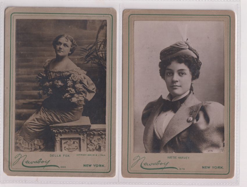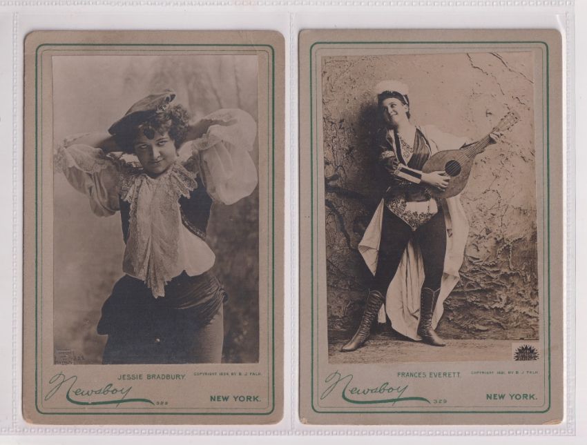 Cigarette cards, USA, National Tobacco Works, Cabinet Pictures (165mm x 105mm), Actresses, Nos 301/390 printed backs with wording 'Red Indian Cut Plug Tobacco' and 'American Tobacco Co', ten cards, 309 Lillian Russell, 314 Jennie Joyce, 315 Jessie Bradbury, 319 Della Fox, 322 Jessie Bradbury, 329 Frances Everett, 340 Lillian Russell, 341 Belle Archer, 355 Della Fox and 379 Hattie Harvey (some with minor faults, gen. gd) (10)