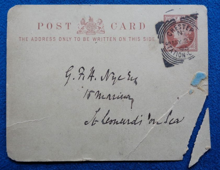 Autograph, William Gladstone a postcard hand written and signed in ink, sent in 1895 and discussing a parliamentary bill (one corner broken off but most of it retained with the tip missing)