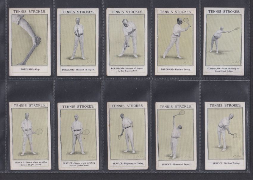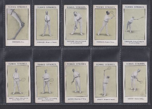 Cigarette cards, 10 sets Sarony (6, Tennis Strokes, Origin of Games std size, Saronicks (large and standard sizes), Celebrities & Their Autographs (large and standard sizes)), Cavanders Peeps into many Lands XL sized, Cavanders Cinema Stars Hand Coloured 30, Pattreiouex (2, Builders of the British Empire, Views 51 cards) (mixed condition fair/vg some series better than others)