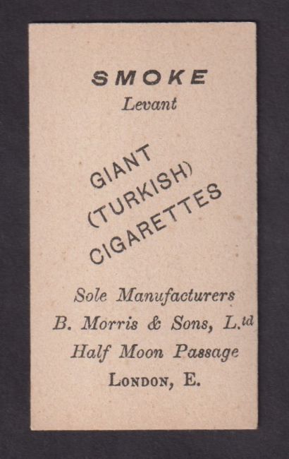 Cigarette card, Morris, Beauties, Collotype, type card, ref. H278, picture no 23 (Giant (Turkish) Cigarettes back) (gd) (1)