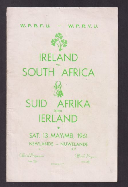 Rugby Union programme, South Africa v Ireland 13 May 1961, 4 page programme from Irelands first ever tour to South Africa, from the game played at Newlands (gd)