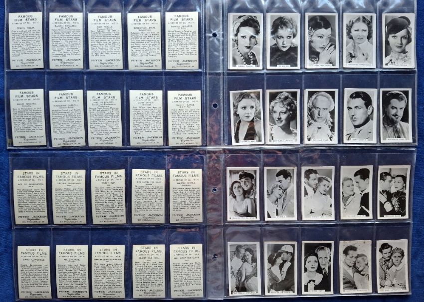 Cigarette cards, 6 sets; all Cinema & Entertainment related; Carreras Film Stars Oval (72 cards including Marx Bros, Laurel & Hardy), Ardath Film Stage Radio Stars XL25, L&B Dance Band Leaders, Phillips Beauties of Today standard sized series of 44 coloured, Peter Jackson (2, Famous Film Stars, Stars in Famous Films) (gen gd a few fair, some series better than others)