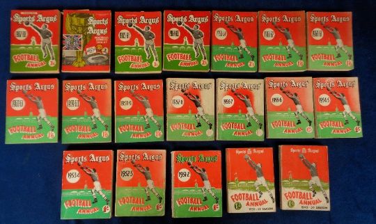 Football Annuals, Sports Argus Football Annual, 19 editions being a complete run from 1949/50 to 1967/68, the Midlands Own Football Annual, some with faults (fair/gd)