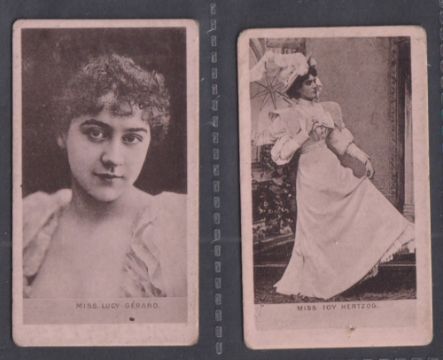 Cigarette card, Ogden's, Actresses, Collotype (Mauve, stamped back), two cards, Miss Lucy Gerrard & Miss Joy Hertzog (slight marks, gen. gd) (2)