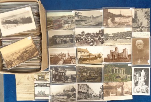 Postcards, a mixed age collection of over 600 cards, the majority Wiltshire and Somerset inc. Bristol. RPs include amusements on the Old Pier Weston Super Mare, Wilton Royal Carpet Factory, Wilton interior and exterior views (4), Tramway Centre Bristol, P.O Barrington Village, Stratford sub Castle (snow scene), Wood St Swindon, also printed card of interior view of Devizes Station (part exterior) (mixed condition)