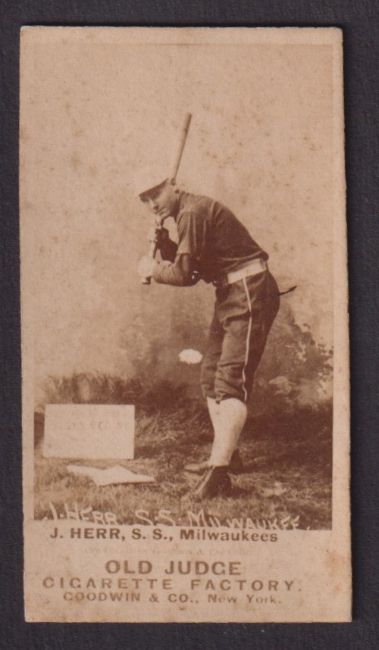 Cigarette card, USA, Goodwin's, Photographic Card, Baseball Subject, Herr, S.S., Milwaukees (Bat over right shoulder) ref. N172 (some slight marks gen. gd) (1)