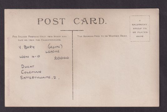Football postcard, Arsenal v Bury at Plumstead, 14 April 1906, photographic card showing match action, published by Goldthorpe of Plumstead, (unused with match details in pencil to reverse) (gd) (1)