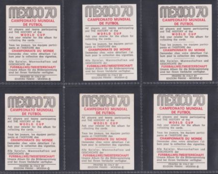 Trade stickers, Panini, Mexico 70, Brazil, 14 stickers, Ado, Alberto, Brito, Lopes, Edu, Everaldo, Gerson, Jairzinho, Joel, Leao, Piazza, Revelino, Tostao & Brazil (Team) (gd/vg) (14)