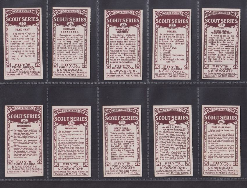 Trade cards, Fry's, Scout Series (White back), (set, 50 cards) (vg)