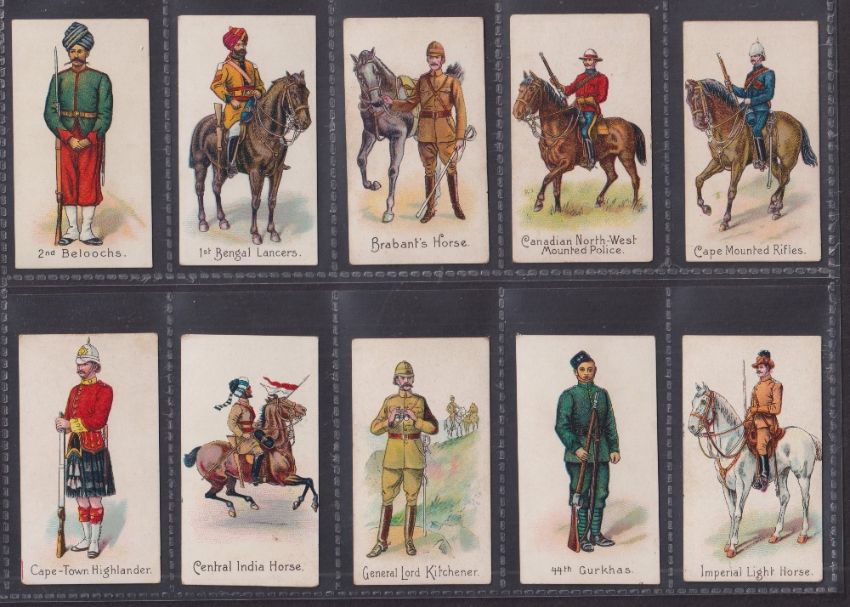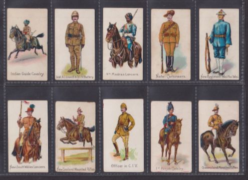 Cigarette cards, Hill's, Colonial Troops (Perfection Vide Dress) (set, 30 cards) (1 with misprinted back o/w gd)