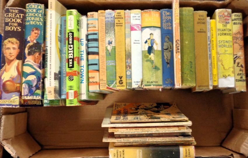 Football Fiction, a collection of 30+ books & booklets, hardback & softback inc. The Great Book for Boys 1932 & 1935, 'The Great Game' by Sidney Horler, several soft back issues inc. 'Wide Awake for Wembley!', 'The Rebel Goalkeeper', 'Foes in Football', 'The Football Crooks' etc, hardback issues inc. 'The Whistle Blew' by Eric Simons, 'They Kidnapped Stanley Matthews' by Leonard Gribble, 'The Phantom Forward' by Sidney Horler etc (some with faults, mostly gd)