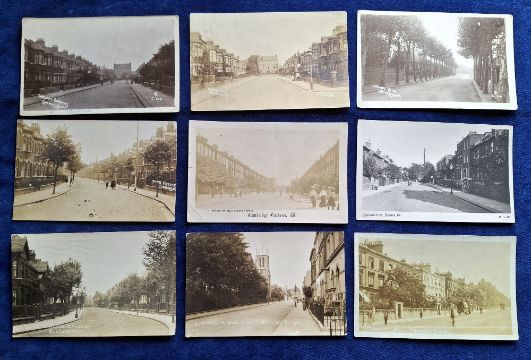 Postcards, London Suburbs, 26 cards, West London RP's including River View Grove Chiswick, The Mall Chiswick, Chiswick Common, High Rd Chiswick (2), Airedale Av Chiswick, Dukes Ave Chiswick, Wolsey Gardens Gunnersbury, Burnaby Gardens Gunnersbury, Harvard Rd Gunnersbury, Silver Crescent Gunnersbury, Augustus Road W, Rusthall Ave Bedford Park, St James Sq. Holland Pk, Warwick Rd Maida Vale, Portsdown Rd Maida Vale, Delaware Rd Maida Vale etc (fair/gd)