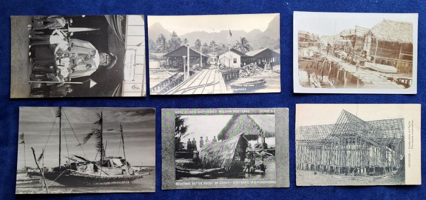 Postcards, Papua New Guinea, over 150 cards many Views, Ethnic & Social History examples including Samarai Island RP, Coin / Money cards, King George V Coronation Celebration RP, Raraotonga Wharf and Boat Sheds RP, Several Boat cards, New Guinea Methodist Mission Removing Native House on Canoe, Construction of Church Saw Mill Workers Ononghe, Kava Drinking etc (many cards gd)