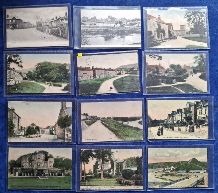 Postcards, North England, 70 cards, all 'Phoenix Series' published by Brittain & Wright Stockton on Tees. Mostly printed cards of villages, street scenes, good scenic views, buildings etc. RP's include Yarm on Tees Bridge, Rokeby Hall, Croft Spa, Eagles Cliffe Church, Grosmont, Barnard Castle, Swainby, Dotheby's Hall Bowes, Chequers Inn Slapstones etc (mainly gd)