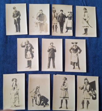 Postcards, Pantomime / Theatrical, 34 cards covering a four year period from Newton Abbot Amateur Operatic & Dramatic Society, all showing actors & actresses in costume, identified on the back of the card neatly in pen. The plays are Mikado 1923 (6), Yeoman of the Guard 1924 (9), Gondoliers 1925 (8), Pirates of Penzance 1926 (11) (gd)