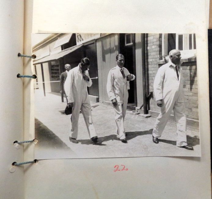 Ephemera, Royalty, original card folio containing 30+ b/w photographs (various sizes, most approx. 6 x 8") of the 1934 visit of HRH Prince George to South Africa showing scenes of the Prince, speeches, crowded streets with crowds on rooves and up lamp posts, Eloff Straat, troop inspections, royal vehicle parade, scout and nurse display, native peoples and more (photos gd, folio poor)