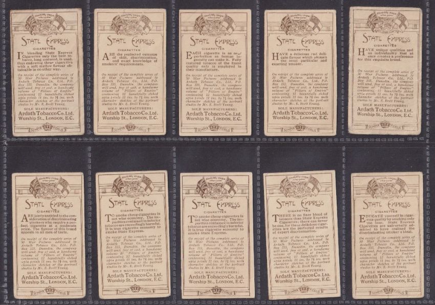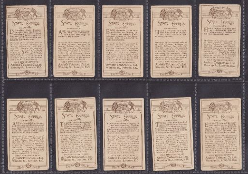 Cigarette cards, Ardath, Great War Series, 70 different cards, Series A (27/50), Series B (7/50, nos 3, 7, 11, 12, 23, 26 & 42) and Series C (36/50) (very mixed condition, poor/gd) (70)