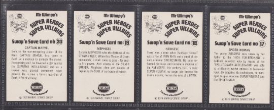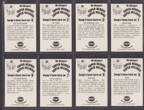 Trade cards, Wimpy Burger Chain, Marvel Super Heroes Super Villains (set 20 cards) (vg)