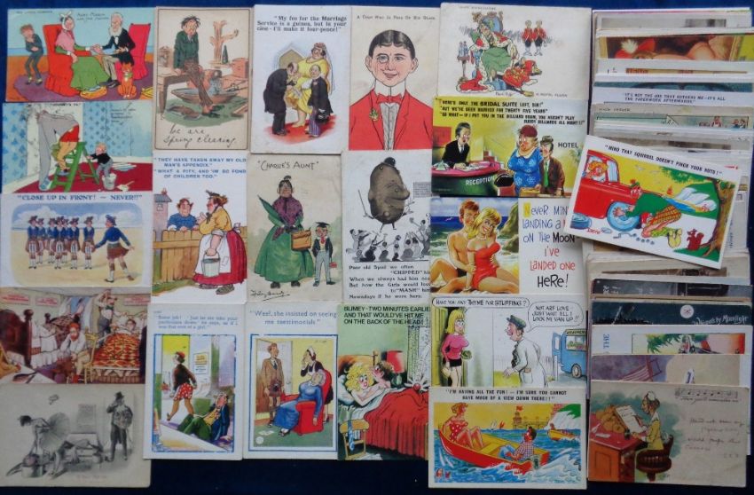 Postcards, Comic, approx. 150 corny comic cards to include Tom Browne, Christie, Stocker Shaw, Studdy, Pedro etc (gen gd)