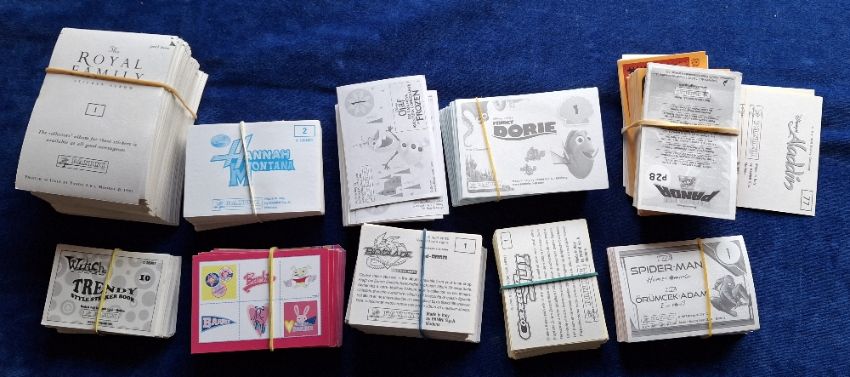 Trade stickers, Panini, approx. 3000 stickers in part sets, some near sets, many series noted including Kung Fu Panda, Aladdin, Corrector Yui, Spiderman, Blade, Smash Hits 1990 and many more. Only minimal duplication (all with original backs gen vg)