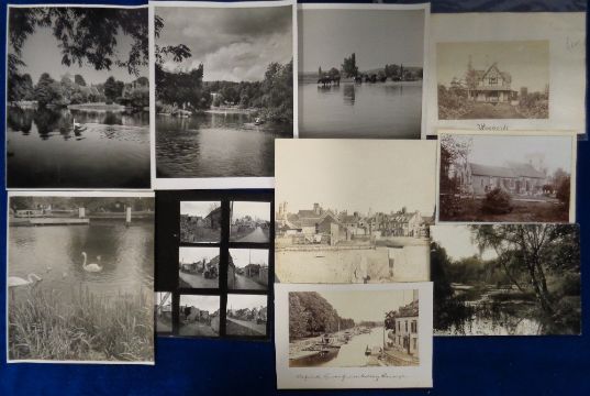 Photographs and Ephemera, 75+ early to mid 20thC Oxfordshire, Berkshire, Buckinghamshire and Bedfordshire images to include Chipping Norton Photographer Frank Packer. Subjects include firemen, fox hunt, carnival etc. Various sizes, many mounted on card. Together with a selection of Elliots of Reading paperwork and advertising booklets from the early to mid 20thC (gd)