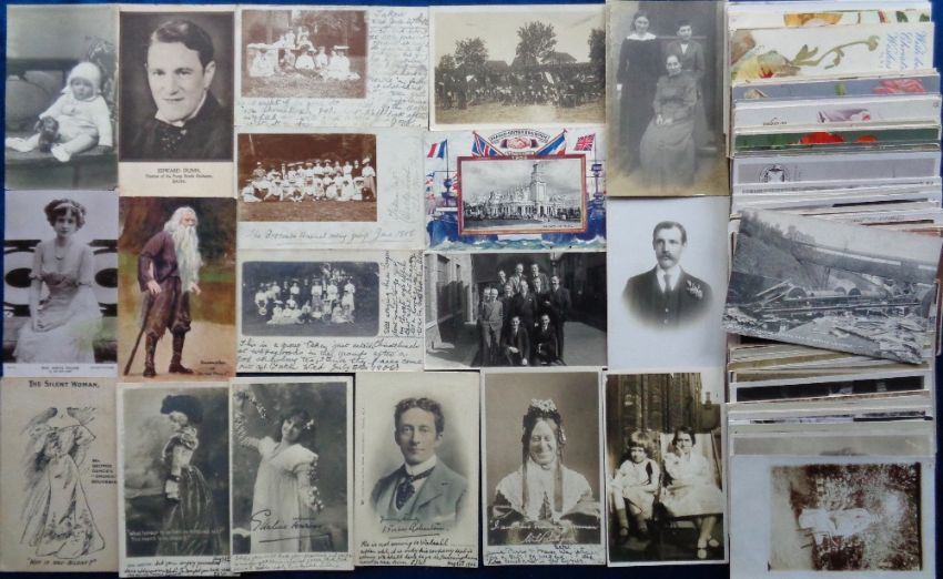 Postcards, Subject, 170+ mixed age cards to comprise social history, theatre and actors, exhibitions, Christina Klein fruit and flowers, portraits, groups, children etc (gen gd)