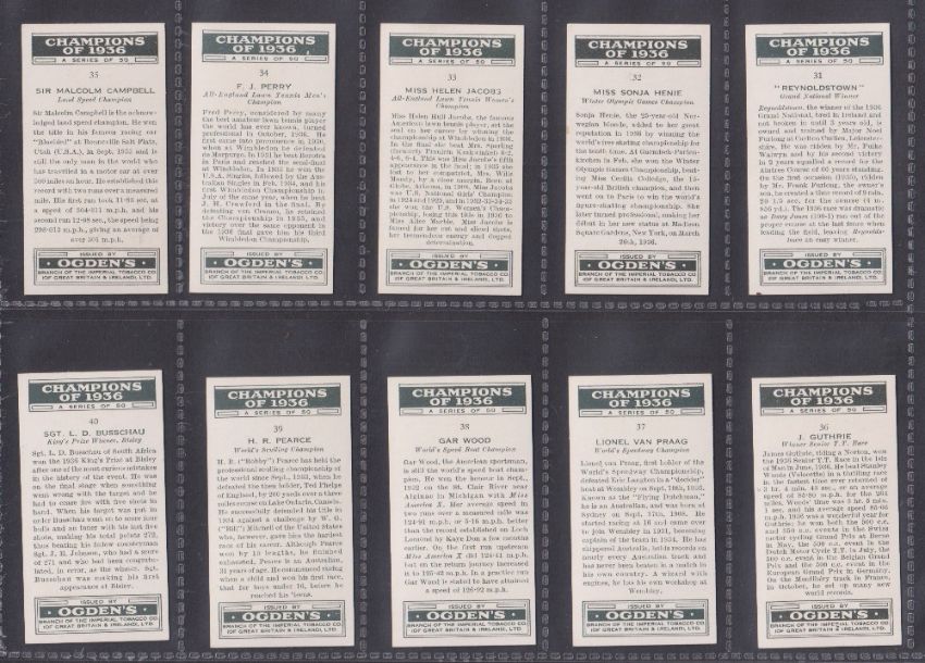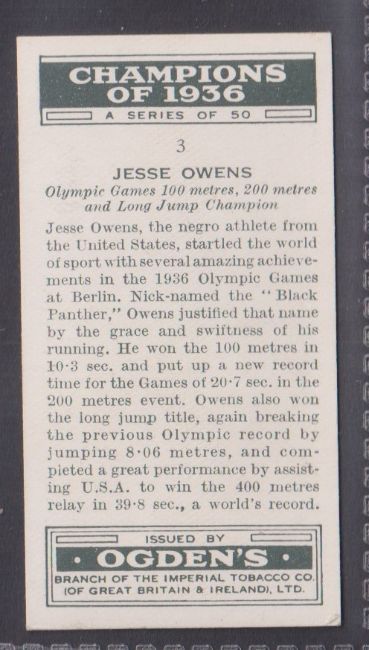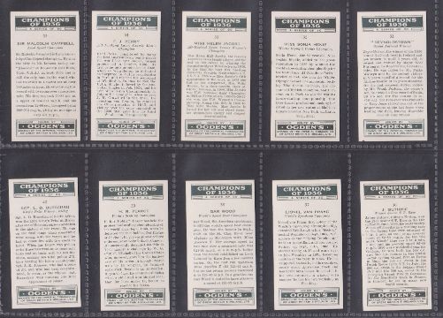 Cigarette cards, Ogden's Champions of 1936 (set 50 cards) including Jesse Owens (gd/vg, Jesse Owens just about vg)
