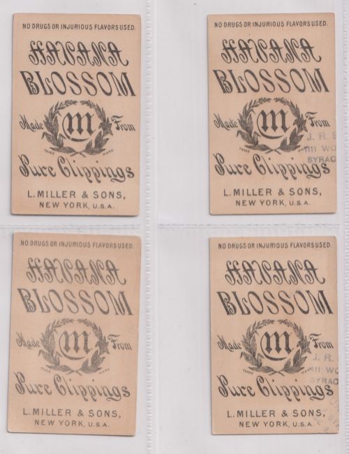 Cigarette cards, USA, L. Miller & Sons, Beauties, 'THIBS' (Havana Blossom back), 'X' size, 4 cards, ref. N538, pictures nos. 55, 78, 87 & 88 (gd) (4)