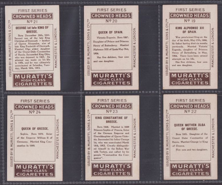Cigarette cards, Muratti, Crowned Heads, 'M' size (set, 35 cards) (gd)