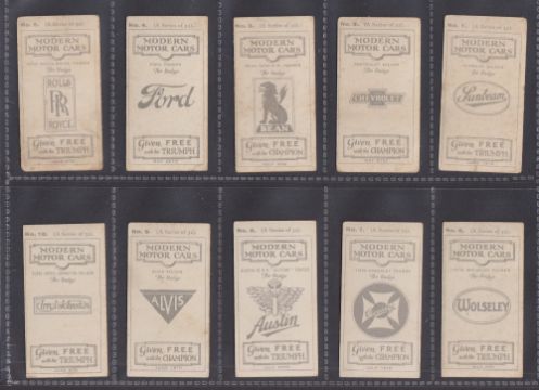 Trade cards, Amalgamated Press, Modern Motor Cars (set, 32 cards) (some with foxing & slight marks, fair/gd)