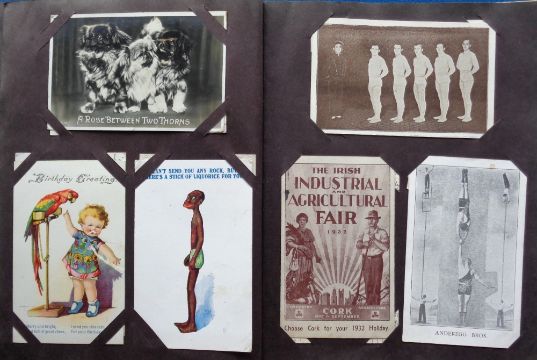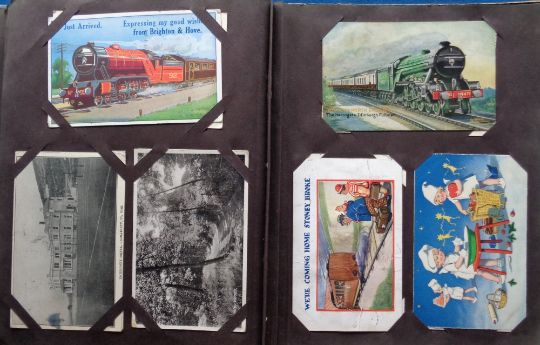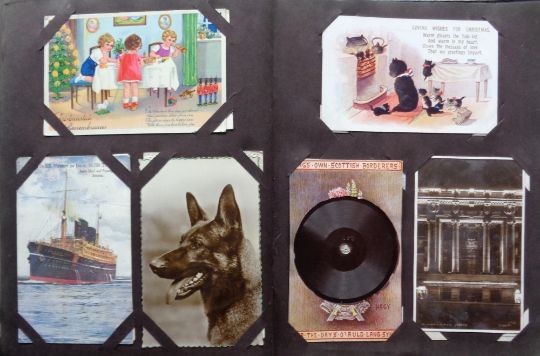 Postcards, a mixed collection of over 200 cards in vintage album. Mainly general UK topographical and subject cards. Artists include Tempest, Cowham, Lambert, Richardson, Preston, Sowerby, Birch etc. Themes include children, greetings (Easter, Xmas), Santa, Irish, cute kids, cats, dogs, horse, shipping, Irish agriculture fair, milk advert, chicks, rabbits, acrobats, locos etc (mixed condition)