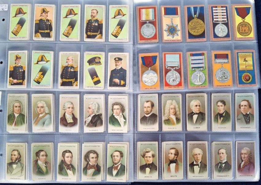 Cigarette cards, Wills, 53 sets in plastic sleeves including Medals, Naval Dress & badges, Musical Celebrities 1st and 2nd, And when did you last see your Father, Allied Army Leaders, Recruiting Posters, First Aid, Time & Money, Worlds Dreadnoughts, Military Motors etc (gen gd)