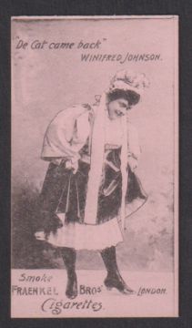 Cigarette card, Fraenkel Bros., Music Hall Artistes (Pink card), type card, Winifred Johnson 'De Cat came back' (gd) (1)
