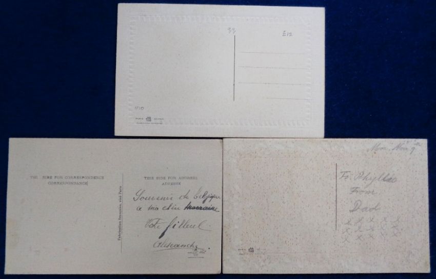Postcards, Silks, photo inserts, King & Queen of Belgium, GV 1914/15, General Joffre 1914/15 (2 tinted) (gd/vg) (3)