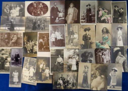 Postcards and Photographs, Social History, approx. 80 cards, mainly RPs inc. families, fashion, children, cycles (9), motorbike (1), shooting (2), brass quintet (1), uniforms (2), 1 lady wearing International Organisation of Good Templars regalia, some named photographers, a few CDV (gd/vg)
