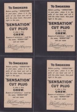 Cigarette cards, USA, Lorillard's, Circus Scenes ('Sensation' wording front & back), 'X' size, four cards, ref. N268, pictures nos 21, 22, 23 & 25 (gd) (4)