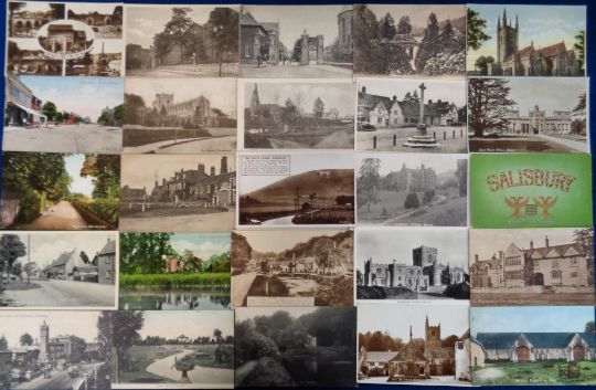 Postcards, Wiltshire, a collection of approx. 100 cards, mainly printed views of towns and villages with a few scenic views. RPs include Shrivenham, Limpley Stoke Hotel, Market Cross and High St Lacock (mixed condition)
