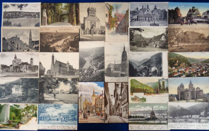 Postcards, Germany, a collection of approx. 100 cards, mostly views of towns, cities, buildings, street scenes, scenic views, a few illustrated chromos (mainly gd)