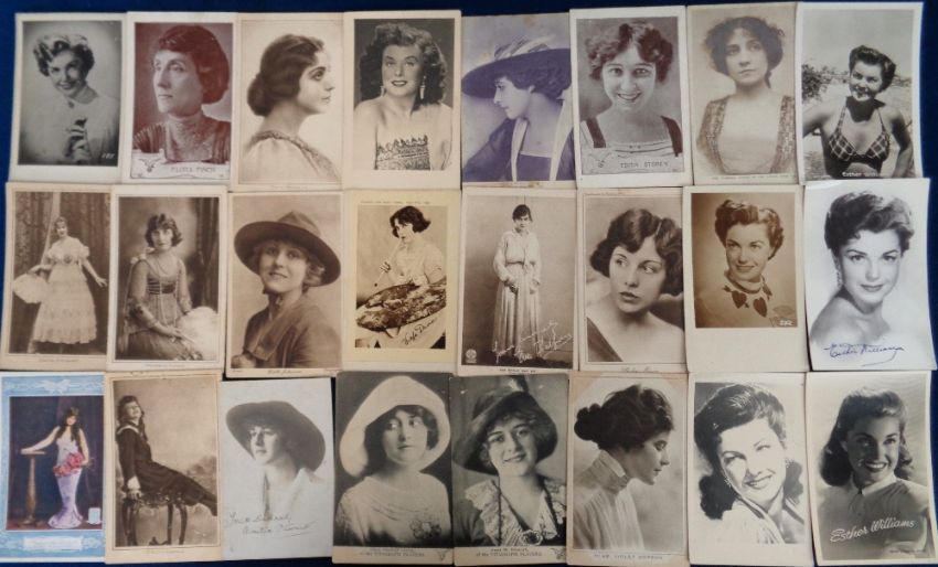 Postcards, Actresses, approx 150 cards to include Mary Pickford, Erna Nitta, Pearl White, Bebe Daniels, Norma Shearer, Dorothy Lamour, Shelley Winters, Lana Turner, Ann Sheridan, Jean Simmons, Margaret Lockwood, Katherine Hepburn, Fannie Ward, Henny Porten, Lilian Gish, Constance Talmadge, Hazel Dawn and many more (fair/gd)