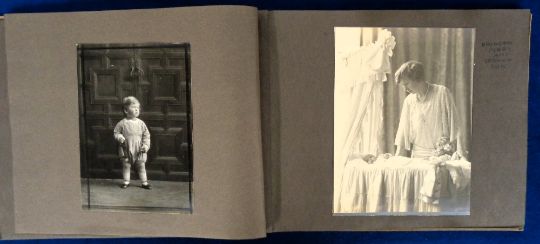 Royalty, a personal photograph album containing 23 images of members of the extended Royal family all annotated (in a slightly clumsy hand), 'The Right Hon George Lascelles 1st Son Of HRH Princess Mary' (aunt of Queen Elizabeth II) (several images), 'Princess Mary and Son', 'The Duchess of York and her Baby Daughter', 'Duke of York' etc. All taken by Speight & Son. Album also includes some paper cuttings and other unrelated snaps (gd)