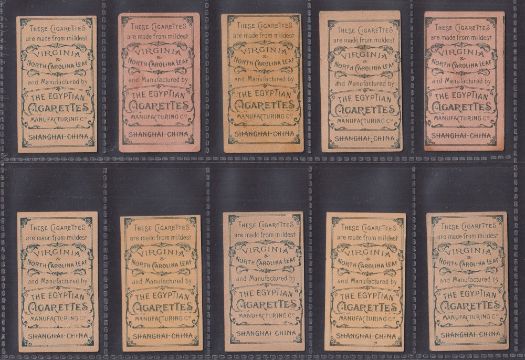 Cigarette cards, China, The Egyptian Cigarettes Manufacturing Co, Russo-Japanese War Series (Blue backs), ten cards nos 3, 4, 26, 30, 42, 45, 47, 49, 50 & 52 (most with some slight faults, marks but gen. gd) (10)