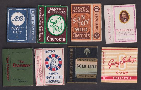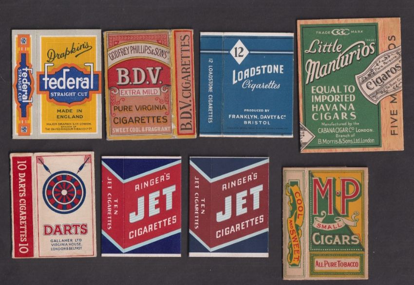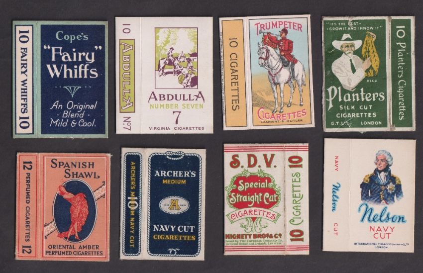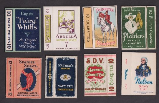 Cigarette packets, a collection of approx. 160 cigarette packets, mostly hulls only but some with slides, duplication throughout, many different manufacturers inc. Allen & Ginter, Ardath, Abdulla, Cavender's, Bear, CWS, Cabana Cigar Co, Gallaher, Churchman's, Carroll, Phillips, Major Drapkin, Smith's, Lloyd's etc (a few fair, mostly gd)