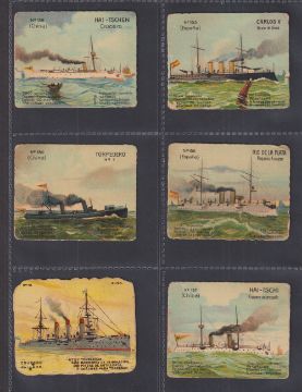 Cigarette cards, Peru, Arbocco, 30 cards, Warships, die-cut borders, 24 different cards, plus Russo-Japanese War, die-cut borders, 2 cards & Russo-Japanese Series, Leaders & Scenes (4) (gen. gd) (30)