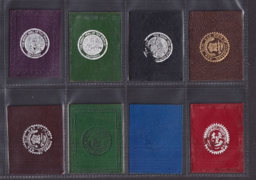 Tobacco leathers, ATC, State Seals (Rectangular shape), 73 different but including many colour & design variations, all for states with initials starting A-D (some with slight glue marks to backs, some with slight wear, gen. gd) (73)