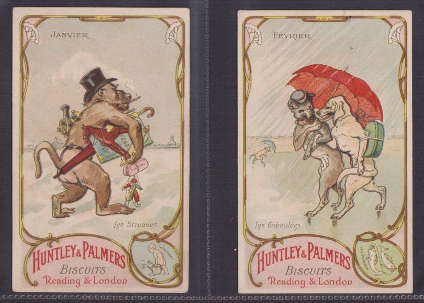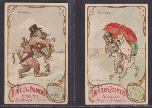 Trade cards, Huntley & Palmers, The Seasons, 'P' size (set 12 cards) (one with writing to back, two others with sl marks, gen gd)