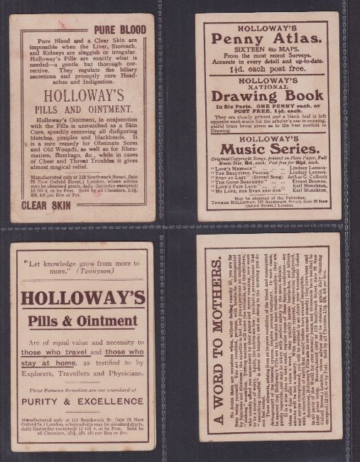 Trade cards, Holloway's, 18 cards in two part sets of Puzzle Series ref. HH23-2, (8/12, missing Find the Bather, Find the Hunters, Find Owner of Watch & Find the Smuggler) & ref. HX182 (10/12, missing Where is Father? & Where is the Pig?) (some slight marks & faults, gen. gd) (18)