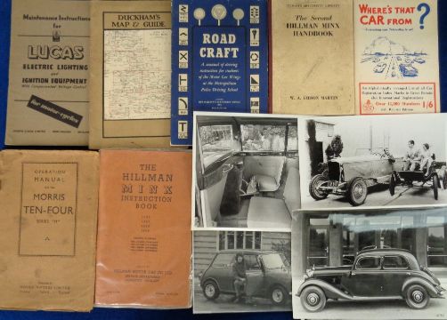 Transportation, Motoring, a collection of approx. 75 owners manuals, handbooks, photographs, advertisements, press photographs etc. Wolseley, Mercedes, Morris, Austin and more (gen gd)