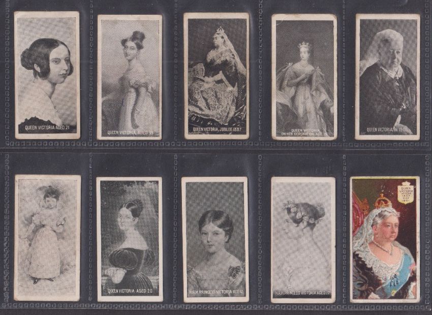 Cigarette cards, 20 cards, all featuring Queen Victoria; Faulkner British Royal Family (9), Baker British Royal Family (3), Anon Plain back British Royal Family (3), Charlesworth Austin British Royal Family, Faulkner Kings & Queens, Singleton & Cole Kings & Queens, Kinnear Royalty Series, Taddy Coronation Series (fair/gd)
