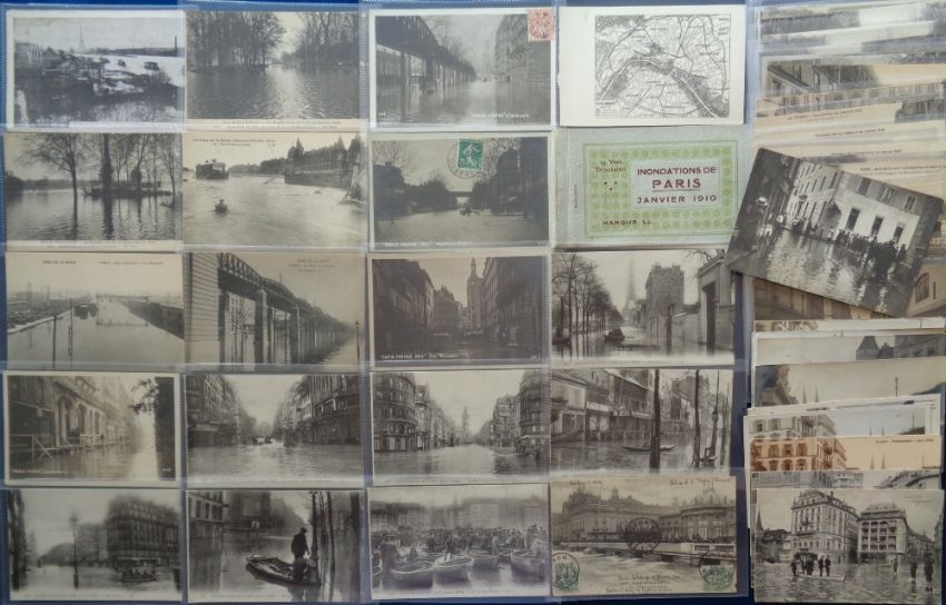 Postcards, Floods, approx. 75 cards showing the 1910 floods in Paris and Luzern (gen gd)
