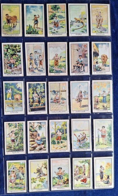 Cigarette cards, China / Siam; 2 sets and 2 part sets; BAT Blue Flag Back, Siamese Life (set 50 cards); BAT plain back Chinese / English Dictionary (set 100 cards) BAT Eagle Bird Animals & Birds, BAT Pinhead Chinese Trades 43/50 (gen gd)